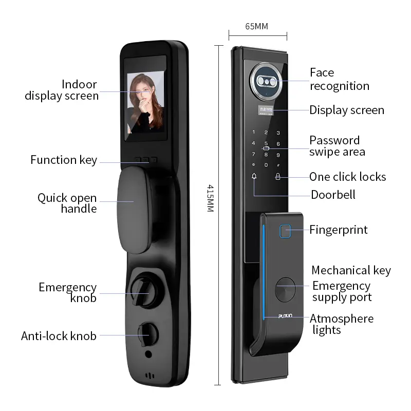 Låsen er udstyret med et indendørs high-definition display, og har et højstyrkehus af zinklegering (anti-nynende, anti-rust) og laveffektdesign (12+ måneders batterilevetid med laveffektalarm). Dens enkle og elegante udseende passer til forskellige dekorationsstile.